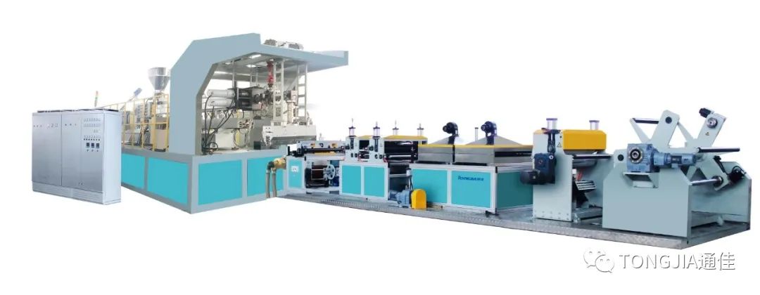 研发TJ- PC75多层共挤芯层发泡片材生产线其产品集自动化、数字化和智能化为一体,生产制品满足国家环保要求,在包装生鲜超市等大规模运用。在未来5年内将盛行于塑料市场,前景可期。广泛用于塑料包装材料、防震材料、塑料膜及塑料袋、一次性餐饮具、食品容器、玩具等。
