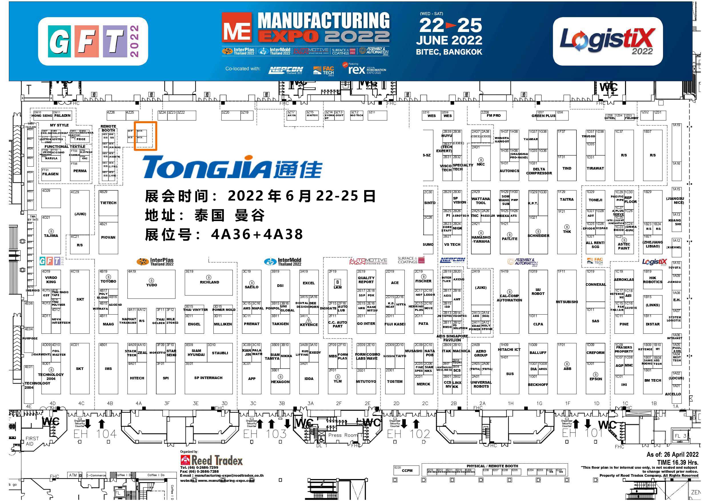 疫情挡不住通佳机械开拓海外市场的步伐,通佳机械将参加2022年泰国国际塑胶展览会,展会时间:2022年6月22-25日 地址:泰国 曼谷 展位号:4A36+4A38。