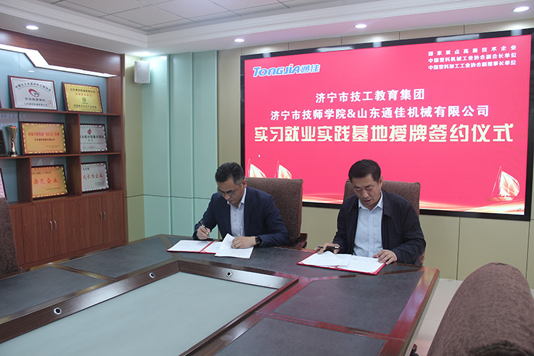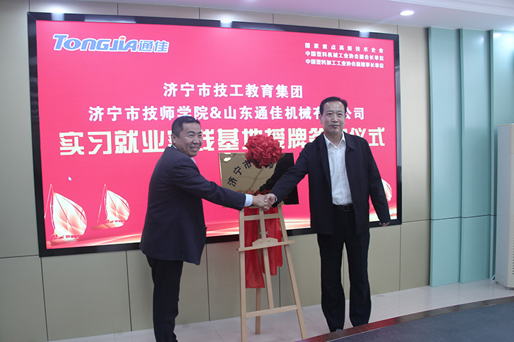 仪式上,与会嘉宾一同观看了通佳机械宣传片,李勇总经理和徐峰副书记签订校企合作协议书,任贻旺和陈胜利共同为“实习就业实践基地”揭牌。