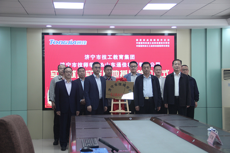 5月11日下午三点,济宁市技工教育集团“实习就业实践基地”签约授牌仪式在山东通佳机械有限公司举行, 济宁市技师学院副书记徐峰、 建筑工程学院院长陈胜利、建筑工程学院副院长欧阳贵旭、济宁技工教育集团秘书处办公室主任孙宽、山东通佳机械有限公司总经理李勇、副总经理任贻旺、财务总监乔福楼、总经理助理兼企管部经理郭克锋等领导出席活动。