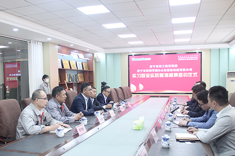 5月11日下午三点,济宁市技工教育集团“实习就业实践基地”签约授牌仪式在山东通佳机械有限公司举行, 济宁市技师学院副书记徐峰、 建筑工程学院院长陈胜利、建筑工程学院副院长欧阳贵旭、济宁技工教育集团秘书处办公室主任孙宽、山东通佳机械有限公司总经理李勇、副总经理任贻旺、财务总监乔福楼、总经理助理兼企管部经理郭克锋等领导出席活动。会议由总经理助理兼人力资源部经理刘育铎主持。